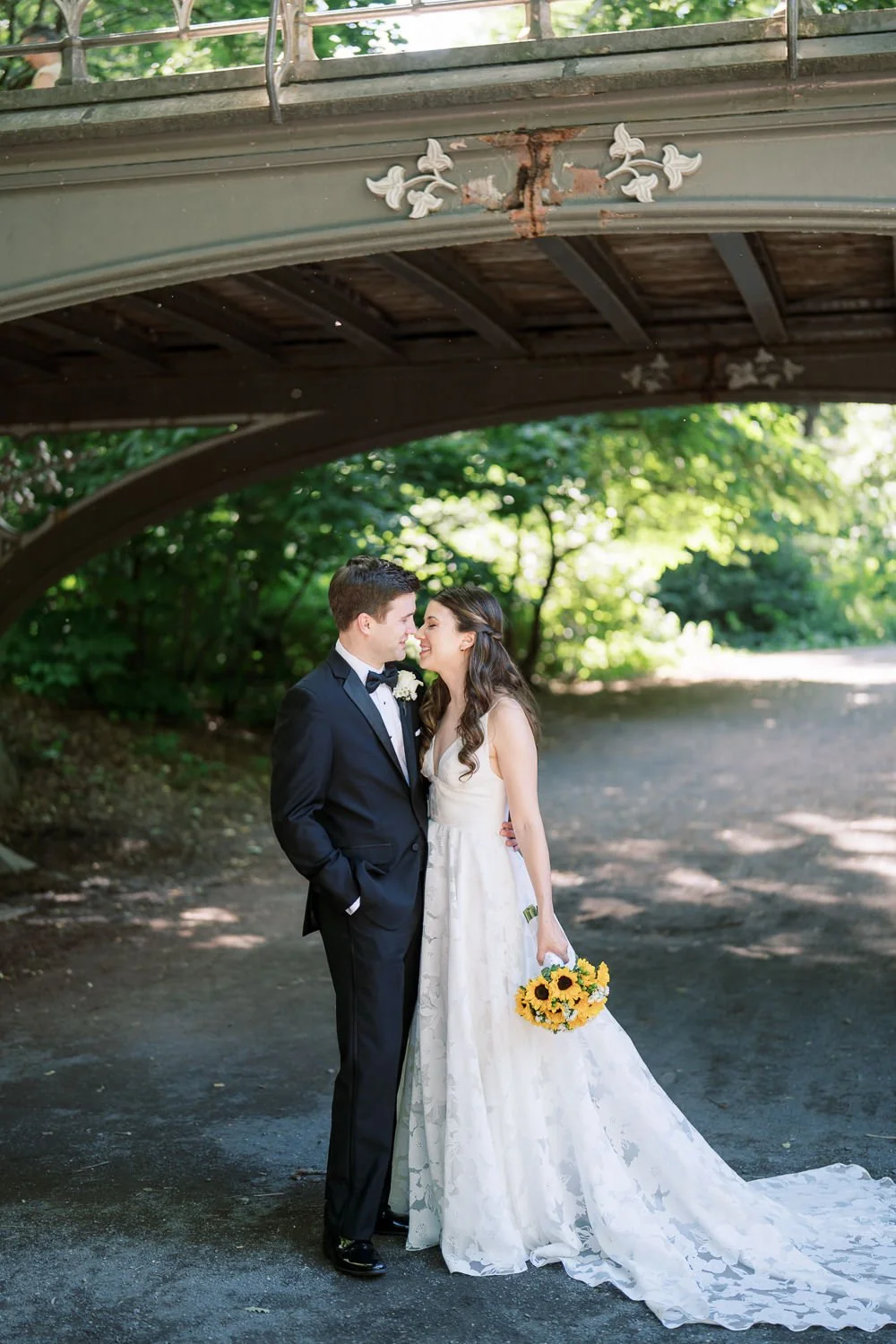 Heading into Central Park for photos was a great contrast from the busy streets and allowed for things to quiet down a bit. That bit of quietness was a great opportunity for Ali & Greg to get some intimate portraits in the city away from the usual chaos. The light filtered through the trees, creating this contrast to the fast-paced rhythm just beyond the park’s edges. Their wedding day was Summer perfection in New York City.